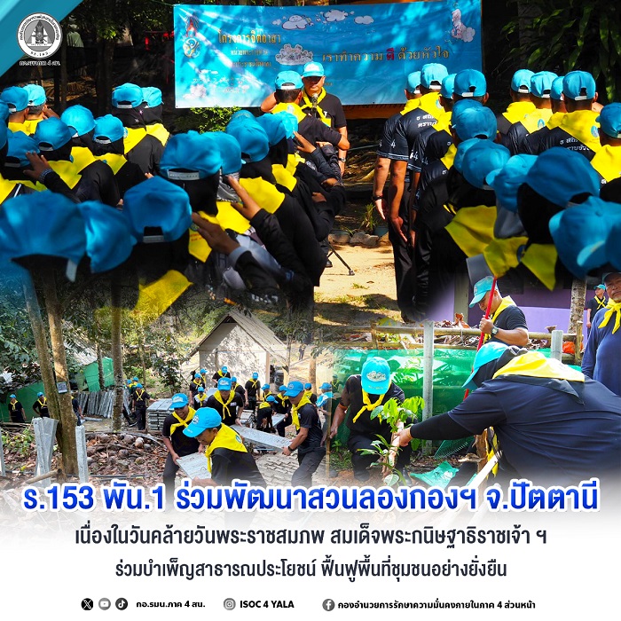 เมื่อวันที่ 10 เมษายน 2569 เวลา 09.00 น. กองพันทหารราบที่ 1 กรมทหารราบที่ 153 (ร.153 พัน.1) จัดกำลังพลชุดปฏิบัติการกิจการพลเรือน จิตอาสา 904 ร่วมกับภาคส่วนต่าง ๆ ทั้งหน่วยงานราชการ ผู้นำท้องถิ่น และประชาชนจิตอาสา จัดกิจกรรม “จิตอาสาพัฒนา บำเพ็ญสาธารณประโยชน์และสาธารณกุศล” เนื่องในโอกาสวันคล้ายวันพระราชสมภพ สมเด็จพระกนิษฐาธิราชเจ้า กรมสมเด็จพระเทพรัตนราชสุดาฯ สยามบรมราชกุมารี ซึ่งถือเป็นวันสำคัญที่พสกนิกรชาวไทยร่วมกันแสดงออกถึงความจงรักภักดีและสำนึกในพระมหากรุณาธิคุณ โดยมี นายมงคล สินยัง นายอำเภอทุ่งยางแดง เป็นประธานในพิธี ณ สวนลองกองสมเด็จพระกนิษฐาธิราชเจ้า ฯ หมู่ที่ 1 ตำบลพิเทน อำเภอทุ่งยางแดง จังหวัดปัตตานี ซึ่งมีกำลังพลจิตอาสาของหน่วยเฉพาะกิจกรมทหารพรานที่ 44 , เจ้าหน้าที่ฝ่ายปกครอง , เจ้าหน้าที่ตำรวจสถานีตำรวจภูธรทุ่งยางแดง , เจ้าหน้าที่ชุดสันติสุขที่ 105 , หัวหน้าส่วนราชการ , ผู้บริหารสถานศึกษา , ผู้บริหารองค์กรปกครองส่วนท้องถิ่น , กำนัน , ผู้ใหญ่บ้าน ตลอดจนประชาชนจิตอาสาพระราชทาน ร่วมกิจกรรมดังกล่าวเป็นจำนวนมาก