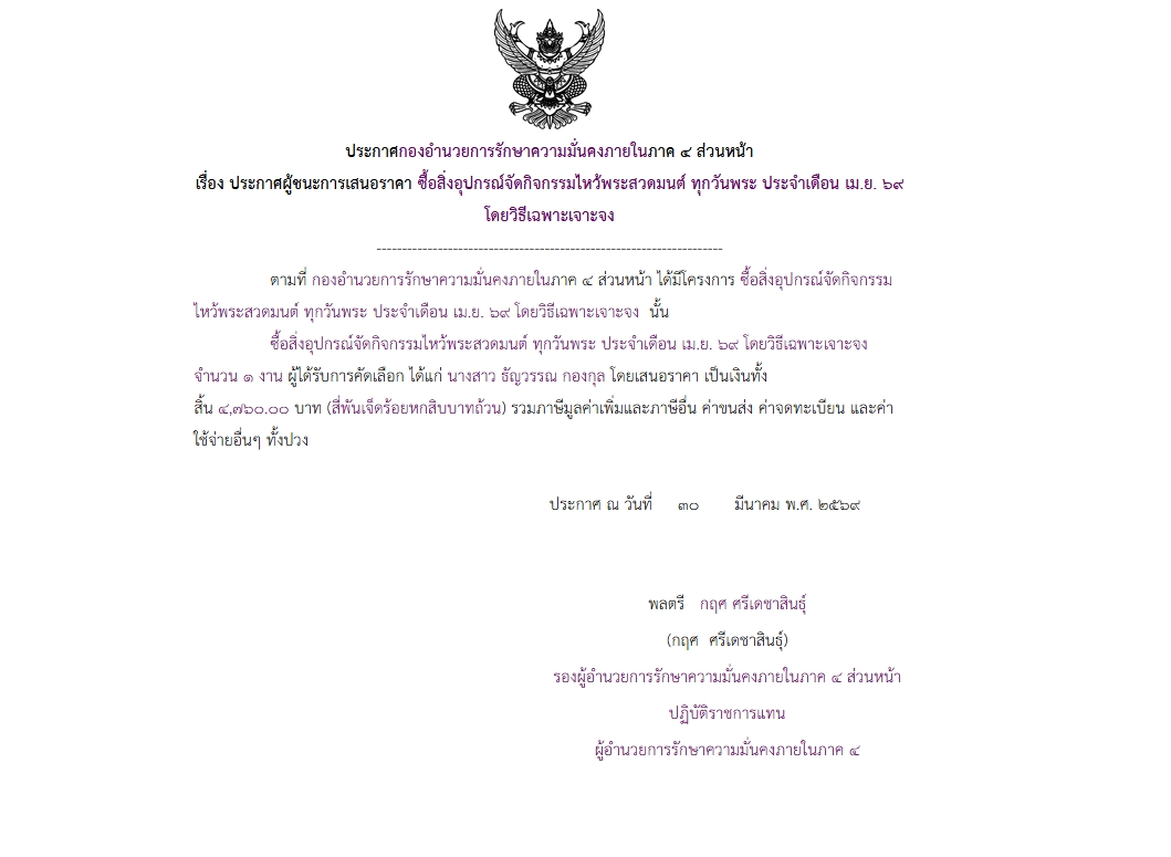 จัดซื้อ จัดจ้างประกาศผู้ชนะการเสนอราคา ประกาศผู้ชนะการเสนอราคา ซื้อสิ่งอุปกรณ์จัดกิจกิจกรรมไหว้พระสวดมนต์ ทุกวันพระ ประจำเดือน เม.ย. ๖๙ โดยวิธีเฉพาะเจาะจง April 11, 2026 7 Share Facebook Twitter Google+ Telegram LINE