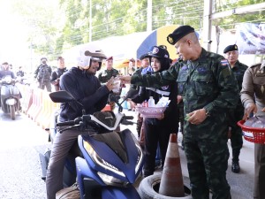 ในโอกาสนี้ แม่ทัพภาคที่ 4 ได้ให้กำลังใจพร้อมขอบคุณเจ้าหน้าที่ผู้ปฏิบัติหน้าที่ทุกคน ที่เสียสละดูแลความปลอดภัยในช่วงวันหยุดยาว พร้อมเน้นย้ำมาตรการในการคัดกรองบุคคล รวมถึงยานพาหนะที่สัญจรไป-มาในพื้นที่ช่วงเทศกาลสงกรานต์ เพื่อให้เกิดความสงบเรียบร้อย ตลอดจนกำชับให้เจ้าหน้าที่ทุกนายเป็นแบบอย่างที่ดีแก่พี่น้องประชาชน ปฏิบัติตัวตามมาตรการอย่างเคร่งครัดตลอดการปฏิบัติงาน ก่อนจะมอบสิ่งของอุปโภค-บริโภค แก่เจ้าหน้าที่ที่ปฏิบัติหน้าที่ ณ จุดตรวจดังกล่าว เพื่อสร้างขวัญและกำลังใจต่อการปฏิบัติหน้าที่ในพื้นที่ต่อไป