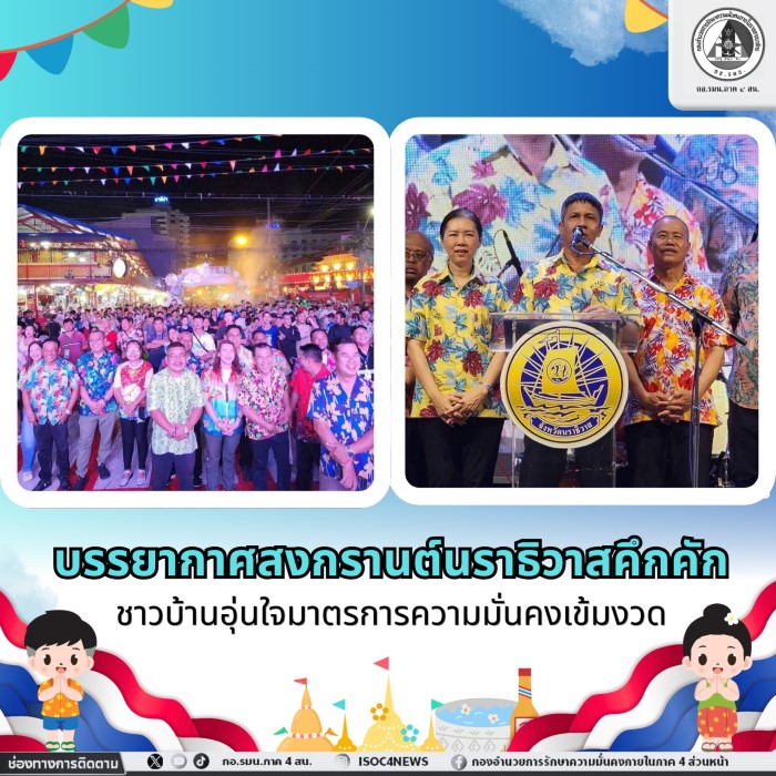 ทั้งนี้ เจ้าหน้าที่ขอยืนยันว่าการบังคับใช้กฎหมายจะกระทำภายใต้หลักนิติธรรม โปร่งใส และตรวจสอบได้ เพื่อมุ่งสร้างสันติสุขให้กลับคืนสู่พื้นที่จังหวัดชายแดนภาคใต้อย่างยั่งยืน โดยความสุขความสนุกสนานในเทศกาลสงกรานต์ปีนี้ คือหลักฐานสำคัญที่แสดงให้เห็นว่าความมั่นคงคือรากฐานของความสุขของประชาชนอย่างแท้จริง