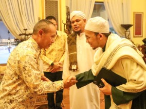 จากนั้น คณะได้เดินทางไปยังสถานที่จัดงาน ณ บ้านนายอาสมี เซะบากอ นายกองค์การบริหารส่วนตำบลกายูบอเกาะ บ้านพอแม็ง หมู่ที่ 4 ตำบลกายูบอเกาะ อำเภอรามัน จังหวัดยะลา โดยมีผู้นำท้องที่ ผู้นำท้องถิ่น ผู้นำศาสนา และพี่น้องประชาชนมุสลิมในพื้นที่ร่วมให้การต้อนรับและเข้าร่วมกิจกรรมอย่างพร้อมเพรียง