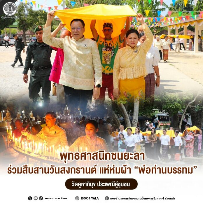 บรรยากาศเทศกาลสงกรานต์ในจังหวัดยะลาเป็นไปอย่างคึกคักและเปี่ยมด้วยความศรัทธา เมื่อพุทธศาสนิกชนในพื้นที่ตำบลหน้าถ้ำและพื้นที่ใกล้เคียง พร้อมใจกันเข้าร่วม “ประเพณีห่มผ้าพ่อท่านบรรทม” ณ วัดคูหาภิมุข (วัดถ้ำยะลา) อำเภอเมือง จังหวัดยะลา เมื่อวันที่ 13 เมษายน 2569 ซึ่งถือเป็นประเพณีสำคัญที่สืบทอดกันมาอย่างยาวนาน สะท้อนถึงความผูกพันของชุมชนกับพระพุทธศาสนา และเป็นศูนย์รวมจิตใจของประชาชนในพื้นที่