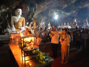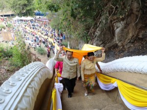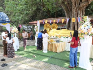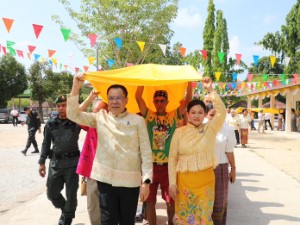 โอกาสนี้ นายวีรพัฒน์ บุญฑริก รองผู้ว่าราชการจังหวัดยะลา เป็นประธานในพิธี พร้อมด้วยนางสุนิสา อยู่หนูสิงห์ วัฒนธรรมจังหวัดยะลา หัวหน้าส่วนราชการ และหน่วยงานที่เกี่ยวข้อง เข้าร่วมในพิธีแห่ผ้าและห่มผ้าพระพุทธไสยาสน์ “พ่อท่านบรรทม” ซึ่งประดิษฐานอยู่ภายในถ้ำคูหาภิมุข โดยกิจกรรมไฮไลต์ของงาน คือ การอัญเชิญผืนผ้าขนาดใหญ่แห่ขึ้นสู่ถ้ำคูหาภิมุข ผ่านบันไดพญานาค โดยประชาชนต่างร่วมแรงร่วมใจกันจับผืนผ้าคนละไม้คนละมือ เดินขึ้นสู่บริเวณที่ประดิษฐานพระพุทธไสยาสน์ด้วยความปลื้มปีติ ภาพแห่งความสามัคคีนี้ไม่เพียงสะท้อนพลังศรัทธา แต่ยังเป็นสัญลักษณ์ของความร่วมมือและความผูกพันของคนในชุมชน
