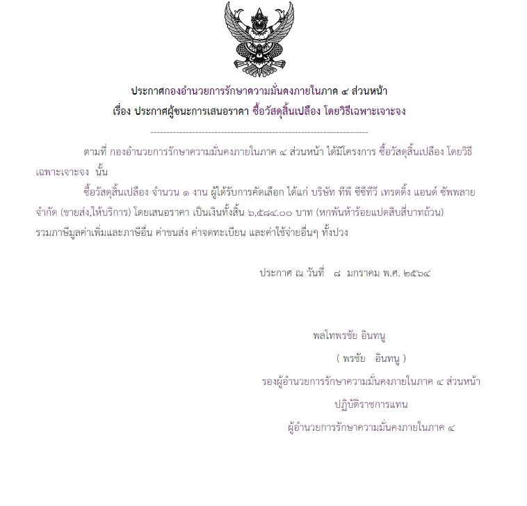 จัดซื้อ จัดจ้างประกาศผู้ชนะการเสนอราคา ประกาศผู้ชนะการเสนอราคา ซื้อวัสดุสิ้นเปลือง โดยวิธีเฉพาะเจาะจง (6,584.00) February 20, 2021 1306 Share Facebook Twitter Google+ Telegram LINE สกบ.กอ.รมน.ภาค 4 สน.