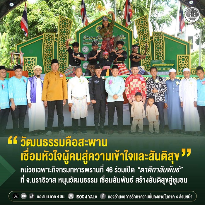 หน่วยเฉพาะกิจกรมทหารพรานที่ 46 ร่วมเปิด “ตาดีกาสัมพันธ์” ที่ จ.นราธิวาส หนุนวัฒนธรรม เชื่อมสัมพันธ์ สร้างสันติสุขสู่ชุมชน