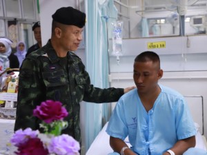 โดยแม่ทัพภาคที่ 4 / ผู้อำนวยการรักษาความมั่นคงภายในภาค 4 ได้เข้าเยี่ยมผู้บาดเจ็บแต่ละราย พร้อมสอบถามอาการอย่างละเอียด พูดคุยให้กำลังใจ และแสดงความห่วงใยต่อกำลังพล รวมถึงครอบครัวของผู้บาดเจ็บ โดยเน้นย้ำว่าหน่วยงานจะให้การดูแลทั้งด้านการรักษาพยาบาล สวัสดิการ และสิทธิประโยชน์ต่าง ๆ อย่างเต็มที่ เพื่อให้กำลังพลได้รับการฟื้นฟูร่างกายและจิตใจอย่างดีที่สุด นอกจากนี้ ยังได้กล่าวชื่นชมความเสียสละและความทุ่มเทของกำลังพลที่ปฏิบัติหน้าที่ด้วยความกล้าหาญ เพื่อดูแลความปลอดภัยให้กับประชาชนในพื้นที่ พร้อมยืนยันว่าหน่วยงานด้านความมั่นคงจะยังคงเดินหน้าปฏิบัติภารกิจอย่างเข้มงวด เพื่อสร้างความสงบเรียบร้อยและความปลอดภัยให้กับประชาชนในพื้นที่จังหวัดชายแดนภาคใต้