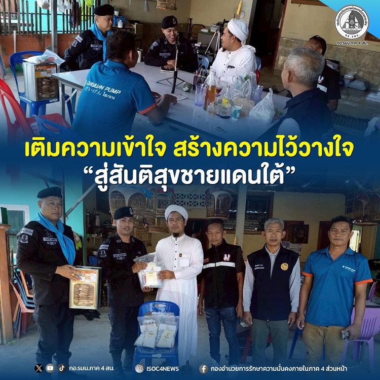 เมื่อวันที่ 21 เมษายน 2569 เวลา 08:00 น. ร้อยเอก สุเมธ มัทหมูหมาท ผู้บังคับกองร้อยทหารพรานที่ 4611 พร้อมกำลังพล ชุดปฏิบัติการกิจการพลเรือน ร่วมกับ ผู้นำชุมชน เดินหน้าสร้างสัมพันธ์เชิงบวก ลงพื้นที่พบปะพูดคุยกับบาบอและนักเรียน ณ สถาบันศึกษาปอเนาะซามารอตีฟัรอีลฮูซัยนียะห์ อำเภอรือเสาะ จังหวัดนราธิวาส เพื่อเปิดเวทีสื่อสารอย่างตรงไปตรงมา แลกเปลี่ยนมุมมอง และชี้แจงข้อเท็จจริงในประเด็นที่สังคมให้ความสนใจในช่วงปัจจุบัน