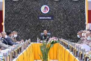 โดย ผู้อำนวยการรักษาความั่นคงภายในภาค 4 กล่าวว่า กอ.รมน. เป็นหน่วยงานของรัฐบาล ไม่ใช่หน่วยงานของทหารโดยเฉพาะ แต่เป็นหน่วยงานที่ต้องทำงานร่วมกันหลายฝ่าย ในรูปแบบของ “คณะกรรมการ” โดยยึดถือสถาบันหลัก คือ ชาติ ศาสนา พระมหากษัตริย์ เป็นหลัก การปฏิบัติงานเน้นการบูรณาการประสานงานร่วมกัน ใช้กฎหมายอย่างเด็ดขาดในการขจัดผู้มีอิทธิพล สร้างความเป็นธรรม รักษาสิ่งแวดล้อม ดูแลแหล่งท่องเที่ยว แหล่งทรัพยากรธรรมชาติ สร้างภาพลักษณ์ให้กับ กอ.รมน. และขอแสดงความชื่นชมกับทุก กอ.รมน.จังหวัด ที่สามารถควบคุมการแพร่ระบาดของโควิด-19 ได้อย่างเด็ดขาด จำนวนผู้ป่วยลดลง และไม่ตรวจพบผู้ป่วยเพิ่มขึ้น ทั้งนี้ ข้อห่วงใยของรัฐบาลที่จะมีกลุ่มผู้ลักลอบเข้าเมืองโดยผิดกฎหมาย ซึ่งเป็นพาหะนำพาเชื้อไวรัสเข้ามา โดยขอเน้นย้ำกองกำลังป้องกันชายแดน ทหาร ตชด. และเจ้าหน้าที่ศุลกากร ปฏิบัติหน้าที่อย่างเข้มงวด เพื่อตรวจจับ ผลักดันผู้ลักลอบเข้าเมืองให้ออกนอกประเทศ สำหรับนโยบายการแก้ไขปัญหาในสามจังหวัดชายแดนภาคใต้ ถือเป็นแผนงานสำคัญของทุกรัฐบาล และกำหนดไว้ในยุทธศาสตร์ชาติด้วย คือ “การสร้างความปลอดภัย และความสันติสุขอย่างถาวรในพื้นที่จังหวัดชายแดนภาคใต้” โดยน้อมนำยุทธศาสตร์พระราชทาน เข้าใจ เข้าถึง พัฒนา มาเป็นหลัก และการสร้างสังคมสันติสุข พูดคุยด้วยสันติวิธี ให้สามารถอยู่ในสังคมที่แตกต่างหลากหลาย แต่ไม่แตกแยก บังคับใช้กฎหมายกับผู้ก่อเหตุรุนแรง ใช้กำลังออกปฏิบัติการเป็นชุดจรยุทธ และมี ศอ.บต. สนับสนุนในงานการพัฒนา การปฏิบัติงานต่าง ๆ มีความโปร่งใส ตรวจสอบได้