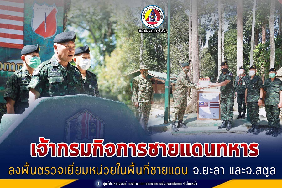 สำหรับการเดินทางลงพื้นที่จังหวัดยะลาและจังหวัดสตูล ของเจ้ากรมกิจการชายแดนทหาร ในวันนี้เพื่อรวบรวมข้อมูลและรับทราบปัญหาข้อขัดข้องของการปฏิบัติงานตามกลไก GBC โดยเฉพาะการปฏิบัติร่วมของไทย – มาเลเซีย และการปฏิบัติของศูนย์สั่งการชายแดนไทยกับประเทศเพื่อนบ้านด้านประเทศมาเลเซีย