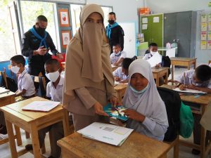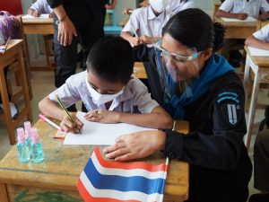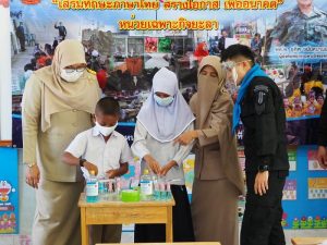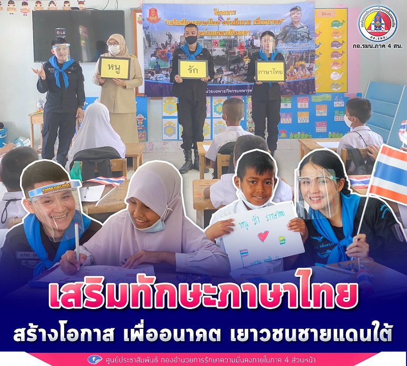 กิจกรรมโครงการ “เสริมทักษะภาษาไทย สร้างโอกาส เพื่ออนาคต” หน่วยเฉพาะกิจยะลา ซึ่งหน่วยเฉพาะกิจกรมทหารพรานที่ 41 ได้ดำเนินการจัดกิจกรรม ณ โรงเรียนบ้านต้นแซะ หมู่ที่ 5 ตำบลจะกว๊ะ อำเภอรามัน จังหวัดยะลา เมื่อในวันที่ 22 กุมภาพันธ์ 2564 ที่ผ่านมา โดยชุดปฏิบัติการกิจการพลเรือนหมวดทหารพรานหญิง พร้อมด้วย ชุดปฏิบัติการกิจการพลเรือนกองร้อยทหารพรานที่ 4109 ดำเนินกิจกรรมดังกล่าวเพื่อเพิ่มประสิทธิภาพผู้เรียน ที่พูด อ่าน เขียน ไม่คล่อง ให้มีพัฒนาการที่ดีขึ้น รวมถึงปลูกจิตสำนึกในความรักชาติ ศาสนา พระมหากษัตริย์ และการสร้างการรับรู้สำนึกดีร่วมกันในการป้องกันการแพร่ระบาดของโรค โควิด-19 ซึ่งเยาวชนมีความเข้าใจและตื่นรู้ต่อมาตรการดังกล่าว พร้อมสาธิตการทำเจลล้างมือที่สามารถ ผลิตเองได้ภายในชุมชน