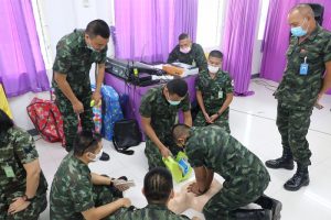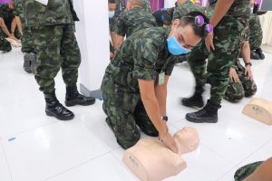 สำหรับการอบรมในครั้งนี้ ผู้เข้ารับการอบรมจะได้รับความรู้วิธีการช่วยชีวิตขั้นพื้นฐาน (Cardiopulmonary Resuscitation, CPR) การปฐมพยาบาลเพื่อช่วยเหลือผู้ประสบเหตุที่หยุดหายใจหรือหัวใจหยุดเต้นให้กลับมาหายใจ และมีการไหลเวียนออกซิเจนรวมทั้งเลือดกลับคืนสู่สภาพเดิม พร้อมทั้งป้องกันเนื้อเยื่อไม่ให้ได้รับอันตรายจากการขาดออกซิเจนอย่างถาวร โดยการกดหน้าอกและช่วยหายใจ รวมถึงการใช้เครื่องกระตุกหัวใจไฟฟ้าอัตโนมัติ (Automated External Defibrillator, AED) ซึ่งเป็นอุปกรณ์อิเล็กทรอนิกส์แบบพกพาชนิดหนึ่ง ที่สามารถวินิจฉัยภาวะหัวใจเต้นผิดจังหวะที่เป็นอันตรายถึงชีวิตได้โดยอัตโนมัติ และสามารถให้การรักษาด้วยการช็อกไฟฟ้ากระตุกหัวใจ โดยใช้กระแสไฟฟ้าหยุดรูปแบบการเต้นของหัวใจที่ผิดจังหวะ เพื่อเปิดโอกาสให้หัวใจกลับมาเต้นใหม่ในจังหวะที่ถูกต้อง ซึ่งกำลังพลที่เข้ารับการฝึกอบรมจะได้รับความรู้ทั้งทางทฤษฎี และการปฏิบัติจริง เพื่อให้เกิดความชำนาญในการช่วยชีวิตเบื้องต้นหากเกิดเหตุการณ์ฉุกเฉินขึ้น