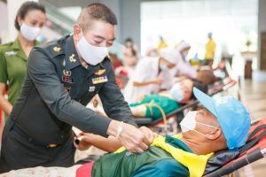 ต่อมา ผู้บัญชาการกองพลทหารราบที่ 5 เดินทางไปยังศูนย์การค้าสหไทยพลาซ่า อำเภอทุ่งสง จังหวัดนครศรีธรรมราช เพื่อร่วมกิจกรรมเนื่องในวันสัปดาห์กองพลทหารราบที่ 5 ภายใต้กิจกรรมบริจาคโลหิต ร่วมกับ ส่วนราชการ ประชาชน และภาคเอกชนในพื้นที่ โดยมีกำลังพลเข้าร่วมบริจาคโลหิต จำนวน 60 นาย คิดเป็นปริมาณโลหิต จำนวน 24,000 มิลลิลิตร เพื่อให้โรงพยาบาลในพื้นที่มีโลหิตสำรองเพื่อช่วยเหลือผู้ป่วยที่จำเป็นต้องใช้โลหิตในการรักษา ทั้งนี้ที่ผ่านมาทหารได้บริจาคโลหิตอย่างต่อเนื่องอยู่แล้ว