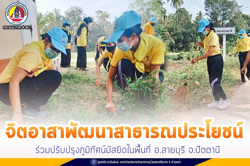 หน่วยเฉพาะกิจกรมทหารพรานที่ 44 ร่วมกับ หน่วยงานราชการ อำเภอสายบุรี เจ้าหน้าที่ทหาร, ตำรวจ ผู้นำท้องที่, ผู้นำท้องถิ่น บัณฑิตอาสา และประชาชนในพื้นที่ จัดกิจกรรมจิตอาสาพระราชทาน เราทำดีเพื่อชาติ ศาสน์ กษัตริย์ ร่วมพัฒนาทำความสะอาด ปรับปรุงภูมิทัศน์ เก็บขยะ ถางหญ้าบริเวณโดยรอบมัสยิดดารุลรัยยาน บ้านปายอนอก หมู่ที่ 8 ตำบลกะดุนง อำเภอสายบุรี จังหวัดปัตตานี ให้มีความสะอาด ร่มรื่น และสวยงาม เพื่อเสริมสร้างความรัก ความสามัคคี ความร่วมมือ พัฒนาสัมพันธ์กับประชาชนในพื้นที่