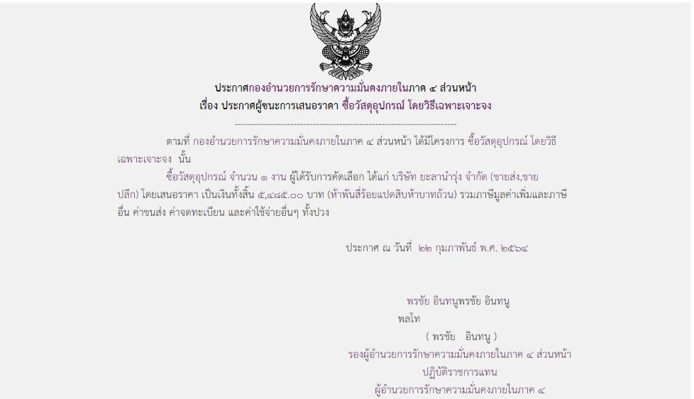 ประกาศผู้ชนะการเสนอราคา ซื้อวัสดุอุปกรณ์ โดยวิธีเฉพาะเจาะจง (5,485.00)