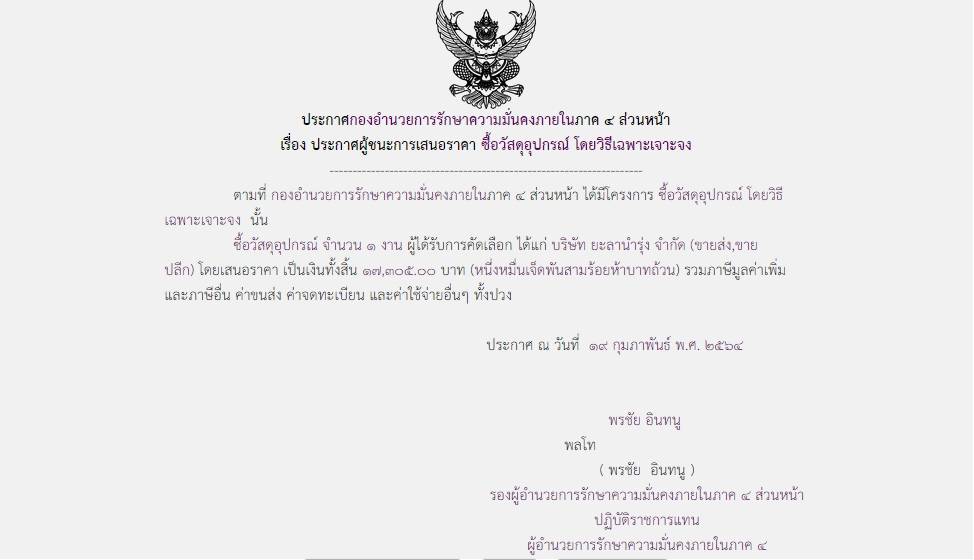 ประกาศผู้ชนะการเสนอราคา ซื้อวัสดุอุปกรณ์ โดยวิธีเฉพาะเจาะจง (17,305.00)
