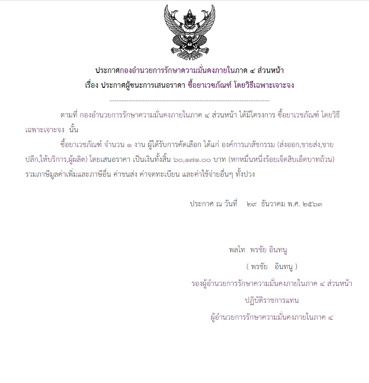 ประกาศผู้ชนะการเสนอราคา ซื้อยาเวชภัณฑ์ โดยวิธีเฉพาะเจาะจง (60,171.00)