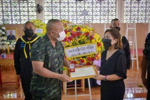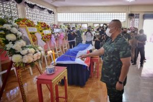 วันนี้ 26 กุมภาพันธ์ 2564 เวลา 10.00 น. ที่วัดบางนรา อำเภอเมือง จังหวัดนราธิวาส พลโท เกรียงไกร ศรีรักษ์ แม่ทัพภาคที่ 4 /ผู้อำนวยการรักษาความมั่นคงภายในภาค 4 เป็นประธานในพิธี วางพวงหรีดเคารพศพและรดน้ำศพ อาสาสมัครทหารพราน ศรราม ราชรักษ์ สังกัดกองร้อยทหารพรานที่ 4501 หน่วยเฉพาะกิจกรมทหารพรานที่ 45 ที่เสียชีวิตจากกรณีคนร้ายไม่ทราบจำนวนลอบวางระเบิด และใช้อาวุธปืนสงครามยิงใส่ ชุดปฏิบัติการจรยุทธ์ ขณะทำการลาดตระเวนจรยุทธ์ในพื้นที่ป่าภูเขาและหมู่บ้านเชิงเขาตะเว บริเวณบ้านแฮ บ้านย่อย บ้านบองอ หมู่ที่ 4 ตำบลบองอ อำเภอระแงะ จังหวัดนราธิวาส เป็นเหตุให้เจ้าหน้าที่เสียชีวิต จำนวน 2 นาย และได้รับบาดเจ็บ จำนวน 1 นาย เมื่อวันที่ 25 กุมภาพันธ์ ที่ผ่านมา โดยแม่ทัพภาคที่ 4 ได้วางพวงหรีดเคารพศพ ของนายกรัฐมนตรี ผู้บัญชาการทหารบก และแม่ทัพภาคที่ 4 พร้อมมอบเหรียญบางระจัน เพื่อเชิดชูเกียรติแก่วีรชนผู้กล้า ที่เสียสละเพื่อความสงบเรียบร้อยของพื้นที่จังหวัดชายแดนภาคใต้ นอกจากนี้ยังมอบเงินช่วยเหลือเบื้องต้น จากผู้บัญชาการทหารบก และจากแม่ทัพภาคที่ 4 แก่ครอบครัวของผู้เสียชีวิต ก่อนเป็นประธานในพิธีรดน้ำศพ อาสาสมัครทหารพราน ศรราม ราชรักษ์ จากนั้นผู้ร่วมพิธี ประกอบไปด้วยหัวหน้าส่วนราชการ ผู้บังคับบัญชา เพื่อนทหาร ตำรวจ ร่วมรดน้ำศพและมอบเงินช่วยเหลือแก่ครอบครัว ท่ามกลางความโศกเศร้าเสียใจที่ต้องสูญเสียบุคคลอันเป็นที่รัก ซึ่งศพของ อาสาสมัครทหารพราน ศรราม ราชรักษ์ จะมีพิธีส่งศพในเวลา 13.00 น. ณ สนามบินบ้านทอน ตำบลโคกเคียน อำเภอเมือง จังหวัดนราธิวาส เพื่อกลับไปบำเพ็ญกุศลยังภูมิลำเนา จังหวัดนครศรีธรรมราช โดยมีแม่ทัพภาคที่ 4 เดินทางมาเป็นประธานในพิธี เพื่อเป็นเกียรติแด่ทหารกล้า นักรบแห่งชายแดนใต้