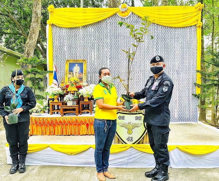 เมื่อวันที่ 21 ก.ค.63 เวลา 09.30 น. ที่ กองบังคับการหน่วยเฉพาะกิจกรมทหารพรานที่ 42 หมู่ที่ 3 บ้านพิกุล ตำบลควน อำเภอปะนาเระ จังหวัดปัตตานี ผู้บังคับหน่วยเฉพาะกิจกรมทหารพรานที่ 42 เป็นประธานในพิธีมอบต้นรวงผึ้งให้กับมวลชนญาลันนันบารู และภาคประชาชน จำนวน 41 ต้น เพื่อนำไปปลูกใน 41 ตำบล ในพื้นที่ อำเภอปะนาเระ,อำเภอยะหริ่ง และอำเภอมายอ จังหวัดปัตตานี เนื่องในโอกาสมหามงคล วันเฉลิมพระชนมพรรษา พระบามสมเด็จพระปรเมนทรรามาธิบดีศรีสินทรมหาวชิราลงกรณพระวชิรเกล้าเจ้าอยู่หัว ครบรอบ 68 พรรษา 28 กรกฎาคม 2563