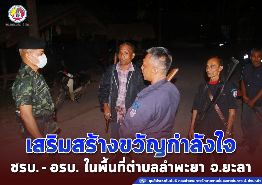 พลตรี อุทิศ อนันตนานนท์ ผู้บังคับหน่วยเฉพาะกิจยะลา และคณะ ลงพื้นที่ตรวจเยี่ยมและให้กำลังใจชุดรักษาความปลอดภัยหมู่บ้าน (ชรบ.) และ อาสาสมัครรักษาหมู่บ้าน (อรบ.) พร้อมทั้งได้เน้นย้ำให้ทางเจ้าหน้าที่ได้ฝึกทบทวน ในเรื่องยุทธวิธีต่างให้กับประชาชนที่อาสามาเป็น ชุดรักษาความปลอดภัยหมู่บ้าน (ชรบ.) และ อาสาสมัครรักษาหมู่บ้าน (อรบ.) ให้มีความเข้มแข็ง และสามารถปฏิบัติงานได้เหมือนเจ้าหน้าที่ เพื่อทดแทนกำลังหลัก