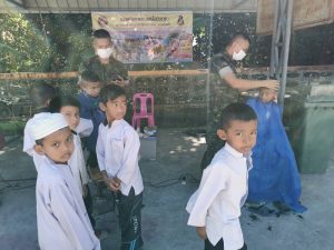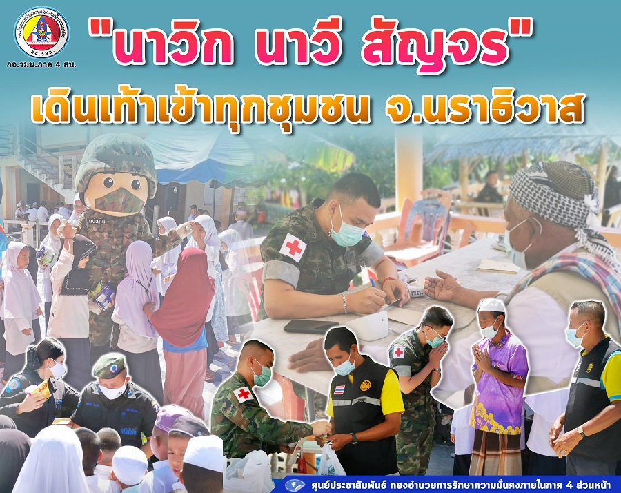 หน่วยเฉพาะกิจนาวิกโยธิน กองทัพเรือ จัดกิจกรรม “นาวิก นาวี สัญจร” ณ โรงเรียนตาดีกาประจำมัสยิดดารุลอามาน หมู่ที่ 4 บ้านบือราแง ตำบลลุโบะสาวอ อำเภอบาเจาะ จังหวัดนราธิวาส ตามโครงการ เดินเท้าเข้าทุกชุมชน โดยหน่วยเฉพาะกิจนาวิกโยธิน กองทัพเรือได้จัดชุดแพทย์เคลื่อนที่ฯ ออกให้บริการทำการตรวจรักษาพยาบาลเบื้องต้น และ หน่วยพัฒนาและช่วยเหลือประชาชน (นพป.ฉก.นย.ภต.) จัดชุดตัดผมสัญจร บริการตัดผมแก่ประชาชนและเยาวชน