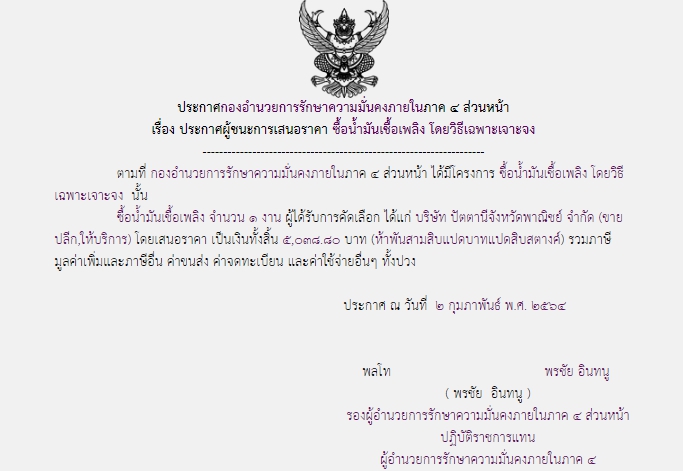 ประกาศผู้ชนะการเสนอราคา ซื้อน้ำมันเชื้อเพลิง โดยวิธีเฉพาะเจาะจง (5,038.80)