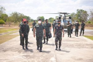 วันนี้ 1 มีนาคม 2564 เวลา 11.00 น. ที่ กองอำนวยการรักษาความมั่นคงภายในภาค 4 ส่วนหน้า ค่ายสิรินธร อำเภอยะรัง จังหวัดปัตตานี พลโท เกรียงไกร ศรีรักษ์ แม่ทัพภาคที่ 4/ ผู้อำนวยการรักษาความมั่นคงภายในภาค 4 ให้การต้อนรับ พลโท วิสันติ สระศรีดา เจ้ากรมยุทธศึกษาทหารบก พร้อมคณะ ในการเดินทางมาตรวจเยี่ยม ศูนย์ประเมินผล กองอำนวยการรักษาความมั่นคงภายในภาค 4 ส่วนหน้า เพื่อติดตามผลการปฏิบัติงานตามนโยบาย และรับทราบปัญหาข้อขัดข้องของศูนย์ เพื่อให้สอดรับกับนโยบาย ภารกิจในด้านการสร้างความเข้าใจ ด้านการพัฒนา ด้านความมั่นคง และด้านการสร้างสภาวะแวดล้อมให้เกื้อกูลตามแนวทางสันติวิธี สอดคล้องกับแนวทางการดำเนินการแก้ไขปัญหาจังหวัดชายแดนภาคใต้ ให้บรรลุวัตถุประสงค์ ในการขับเคลื่อนการบูรณาการแผนงานโครงการต่าง ๆ ก่อนเดินทางไปยัง ศูนย์ฝึกทางยุทธวิธี ค่ายมหาจักรีสิรินธร อำเภอนาทวี จังหวัดสงขลา เพื่อตรวจเยี่ยมการปฏิบัติ และการฝึกของหน่วย ตรวจมาตรฐานการฝึกตามสนามการฝึกต่าง ๆ ทั้งทฤษฎีและการปฏิบัติจริง ให้สอดรับกับระบบ และนโยบายการฝึกทักษะการป้องกันตนเอง และรักษาความปลอดภัย เพื่อป้องกันและเสริมสร้างความมั่นคงในพื้นที่จังหวัดชายแดนภาคใต้สูงสุด