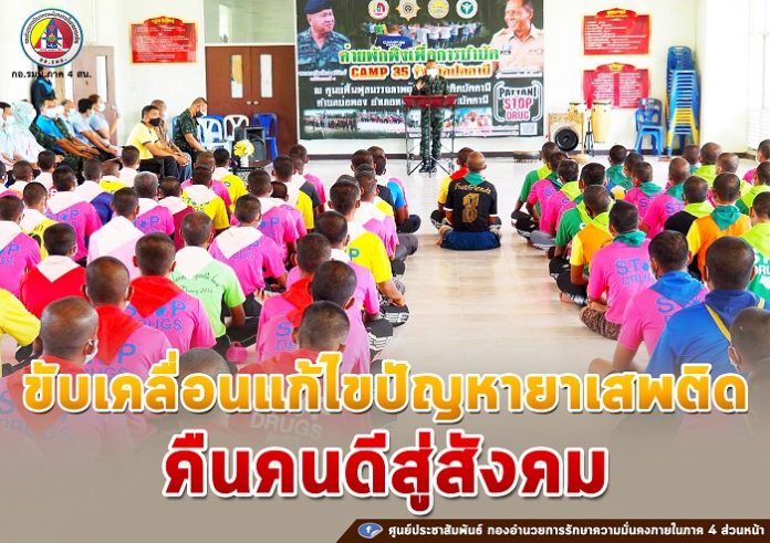 จังหวัดปัตตานี ดำเนินงานตามแนวทางการบำบัดรักษาและแก้ไขปัญหายาเสพติดข้างต้น โดยจัดตั้งค่ายพักพิงเพื่อการบำบัด (Camp 35) จังหวัดปัตตานี รุ่นที่ 1 ประจำปีงบประมาณ 64 ระหว่างวันที่ 18 กุมภาพันธ์ – 24 มีนาคม 2564 โดยนำผู้ป่วยยาเสพติดระดับผู้ติด เข้ารับการอบรมฟื้นฟูสมรรถภาพตามหลักสูตรทางการแพทย์ในระยะเวลา 35 วัน ซึ่งจำนวนผู้เข้ารับการบำบัด (ชาย) ในครั้งนี้มีจำนวน 163 คน หลักสูตรของ Camp 35 เป็นหลักสูตรที่เข้มงวด ทำให้ทุกคนที่เข้ารับการบำบัดได้ฝึกความมีระเบียบวินัย, ได้รู้จักเพื่อนใหม่ และที่สำคัญคือ ได้ปฏิบัติศาสนกิจครบถ้วน สามารถละหมาดได้ครบทุกเวลา