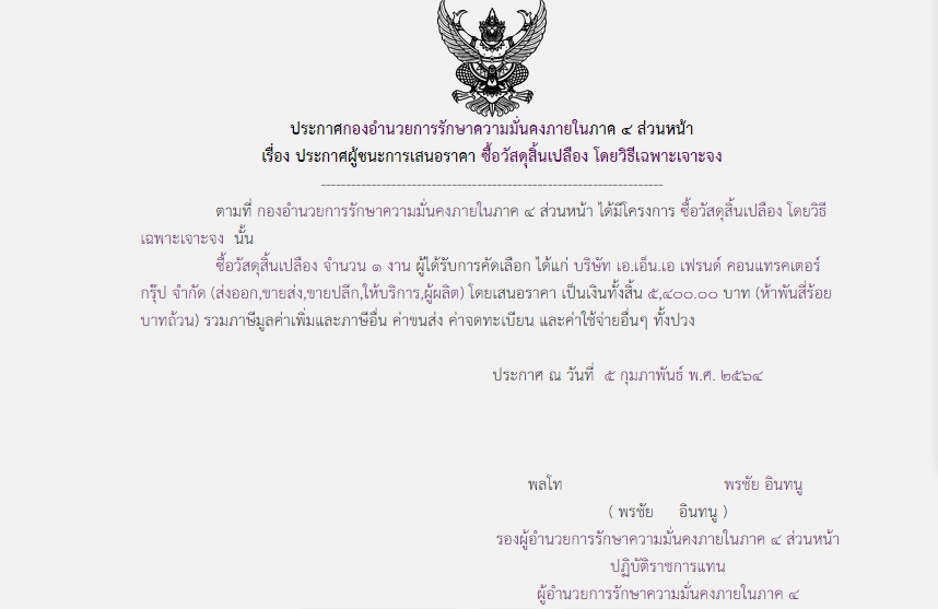 จัดซื้อ จัดจ้างประกาศผู้ชนะการเสนอราคา ประกาศผู้ชนะการเสนอราคา ซื้อวัสดุสิ้นเปลือง โดยวิธีเฉพาะเจาะจง ( ๕,๔๐๐.๐๐ บาท ) March 4, 2021 971 Share Facebook Twitter Google+ Telegram LINE กอ.รมน.ภาค ๔ สน.