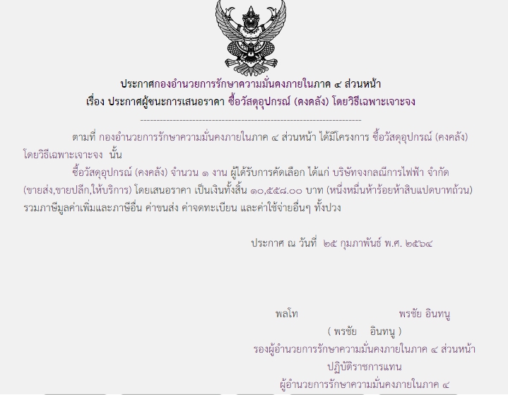 ประกาศผู้ชนะการเสนอราคา ซื้อัวสดุอุปกรณ์ ( คงคลัง ) โดยวิธีเฉพาะเจาะจง ( ๑๐,๕๕๘.๐๐ บาท )