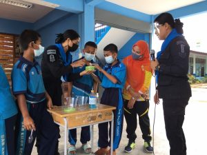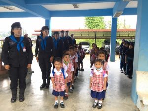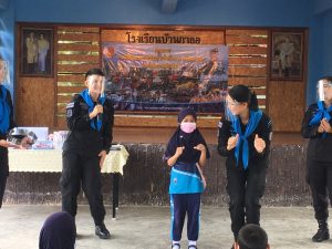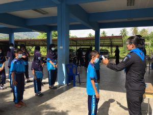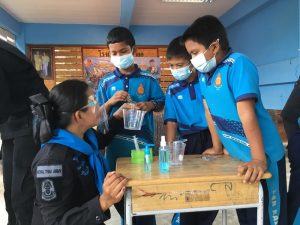 ทั้งนี้ได้สอดแทรกกิจกรรมโครงการ “เสริมทักษะภาษาไทย สร้างโอกาส เพื่ออนาคต” หน่วยเฉพาะกิจยะลา เพื่อเพิ่มทักษะผู้เรียน ให้มีพัฒนาการที่ดีขึ้น และปลูกจิตสำนึกในความรักชาติ ศาสนา พระมหากษัตริย์ พร้อมทั้งให้คำแนะนำในการดูแลตนเอง การร่วมกันป้องกันการแพร่ระบาดของเชื้อไวรัสโควิด-19 และได้สาธิตการทำเจลล้างมือที่สามารถผลิตเองได้ภายในชุมชน ณ โรงเรียนบ้านกาลอ ตำบลกาลอ อำเภอรามัน จังหวัดยะลา
