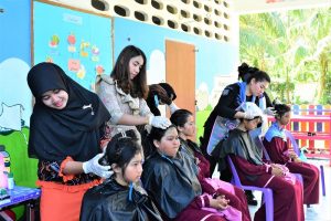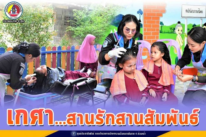 หน่วยเฉพาะกิจกรมทหารพรานที่ 30 นำชุดปฏิบัติการพร้อมเครื่องมือในการตัดผม เข้าพื้นที่โรงเรียนเพื่อพบปะพัฒนาสัมพันธ์กับคณะครู ผู้ปกครอง และน้อง ๆ นักเรียน พร้อมทั้งได้จัดกิจกรรมเกศา…สานรักสานสัมพันธ์ โดยการออกให้บริการตัดผมให้กับนักเรียนชาย และหมักผมกำจัดเหาให้กับนักเรียนหญิง ซึ่งมีเด็กนักเรียนตั้งแต่ชั้นอนุบาล 1 – ชั้น ป.6 เข้ารับบริการอย่างทั่วถึง เพราะความผูกพันธ์นั้นต่างจากความรัก เราจึงเลือกสร้างทั้งสองสิ่งพร้อม ๆ กัน เพื่อเสริมสร้างความสัมพันธ์อันดีระหว่างกัน ณ โรงเรียนบ้านป่าหวัง หมู่ที่ 1 ตำบลบันนังสตา อำเภอบันนังสตา จังหวัดยะลา
