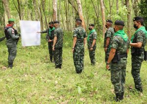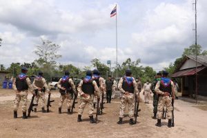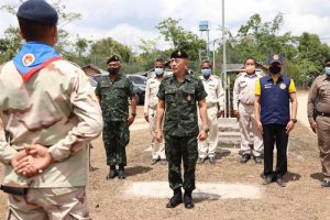 วันที่ 8 มีนาคม 2564 เวลา 11.00 น. ณ ฐานปฏิบัติการชุดคุ้มครองตำบลท่าม่วง อำเภอเทพา จังหวัดสงขลา พลตรี ศานติ ศกุนตนาค ผู้บังคับหน่วยเฉพาะกิจสงขลา ลงพื้นที่ตรวจเยี่ยมชุดคุ้มครองตำบลท่าม่วง พบปะให้โอวาท สร้างขวัญกำลังใจแก่เจ้าหน้าที่ พร้อมมอบแนวทางการปฏิบัติงาน เน้นย้ำให้กำลังพลปฏิบัติหน้าที่ด้วยความไม่ประมาท มีความพร้อมทุกสถานการณ์ มีมาตรการรักษาความปลอดภัยในพื้นที่ ปรับเปลี่ยนยุทธวิธีให้เข้ากับสถานการณ์ ตลอดจนการบูรณาการทำงานร่วมกันอย่างครอบคลุมในทุกส่วน ทั้งกำลังภาคประชาชน ผู้นำท้องที่ ผู้นำท้องถิ่น เจ้าหน้าที่ทหาร เจ้าหน้าที่ตำรวจ และฝ่ายปกครอง พร้อมกันนี้ผู้บังคับหน่วยเฉพาะกิจสงขลาได้ มอบเครื่องอุปโภค – บริโภค หน้ากากอนามัย และเจลแอลกอฮอล์ ให้กับกำลังพล ใช้ป้องกันการแพร่ระบาดของเชื้อโควิด – 19 ในพื้นที่