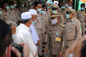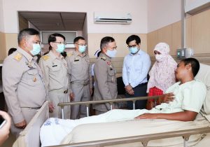 จากนั้น เวลา 10.30 น. องคมนตรี พร้อมคณะได้เดินทางมายัง โรงพยาบาลปัตตานี อำเภอเมือง จังหวัดปัตตานี เพื่อเยี่ยมเยียน อาสาสมัครทหารพรานอุมา ฮาแว สังกัดหน่วยเฉพาะกิจกรมทหารพรานที่ 42 ซึ่งได้รับบาดเจ็บจากเหตุการณ์ลอบวางระเบิดในพื้นที่บริเวณบ้านบางมะรวด หมู่ที่ 1 ตำบลบ้านกลาง อำเภอปะนาเระ จังหวัดปัตตานี เมื่อวันที่ 15 กรกฎาคม 2563 ที่ผ่านมา พร้อมมอบกระเช้าเยี่ยม เพื่อเป็นขวัญกำลังใจ ก่อนจะเดินทางต่อไปยัง กองร้อยทหารราบที่ 15314 หน่วยเฉพาะกิจปัตตานี 25 อำเภอเมือง จังหวัดปัตตานี ตรวจเยี่ยมและให้กำลังใจแก่เจ้าหน้าที่ที่ปฏิบัติงานในพื้นที่จังหวัดชายแดนภาคใต้