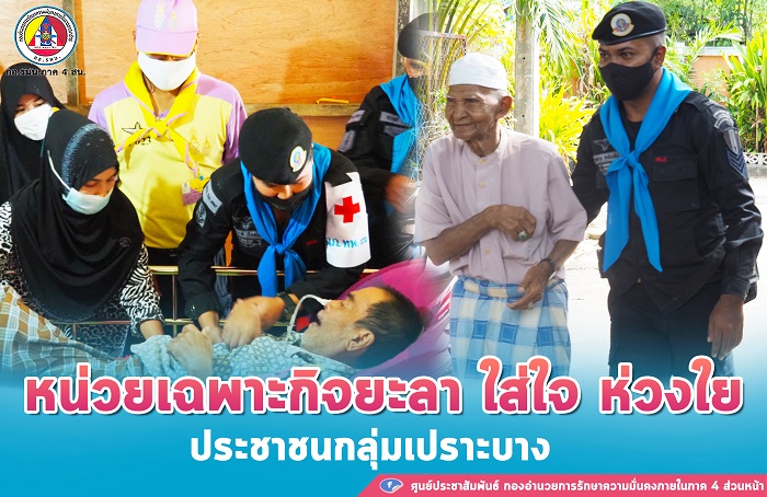 หน่วยเฉพาะกิจกรมทหารพรานที่ 41 จัดกำลังพล ชุดปฏิบัติการกิจการพลเรือนหมวดทหารพรานหญิง ร่วม ศูนย์อำนวยการแพทย์จังหวัดชายแดนภาคใต้, คณะขับเคลื่อนงานสุขภาพ, ศูนย์อำนวยการจิตอาสาพระราชทาน จังหวัดชายแดนภาคใต้ ชุดสันติสุขที่ 308/ชุดทักษิณสัมพันธ์ที่ 304, และ โรงพยาบาลส่งเสริมสุขภาพตำบลบาลอ มอบเตียงผู้ป่วยให้กับ นายมะแอ ดะอุแม เป็นผู้ป่วยติดเตียงในพื้นที่ ตำบลบาลอ อำเภอรามัน จังหวัดยะลา ซึ่งเป็นการขยายผลต่อยอดโครงการ “หน่วยเฉพาะกิจยะลา ใส่ใจ ห่วงใย ประชาชนกลุ่มเปราะบาง” พร้อมจัดโครงการ “รักษ์หัวใจ ชายแดนใต้” ให้บริการตรวจสุขภาพหัวใจแก่ผู้สูงอายุ (EKG) ในพื้นที่ ตำบลยะต๊ะ และ ตำบลเนินงาม อำเภอรามัน จังหวัดยะลา รวม 82 ราย เพื่อตรวจรักษาขั้นต้น และป้องกันการเกิดความผิดปกติของโรคหลอดเลือดหัวใจตีบในผู้สูงอายุ โดยมี พันเอกนายแพทย์ โชคชัย ขวัญพิชิต รองผู้อำนวยการศูนย์อำนวยการแพทย์จังหวัดชายแดนภาคใต้ และคณะ เป็นผู้ดำเนินให้บริการทางการแพทย์ และให้บริการเครื่องตรวจคลื่นหัวใจไฟฟ้า ตามโครงการ “รักษ์หัวใจ ชายแดนใต้”