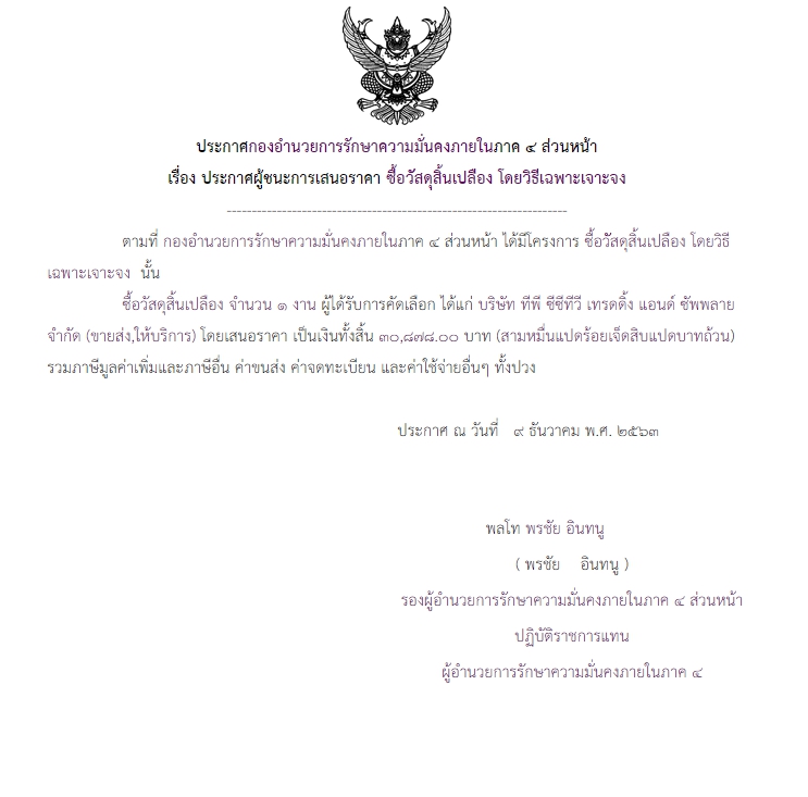 ประกาศผู้ชนะการเสนอราคา ซื้อวัสดุสิ้นเปลือง โดยวิธีเฉพาะเจาะจง ( ๓๐,๘๗๘.๐๐ บาท )