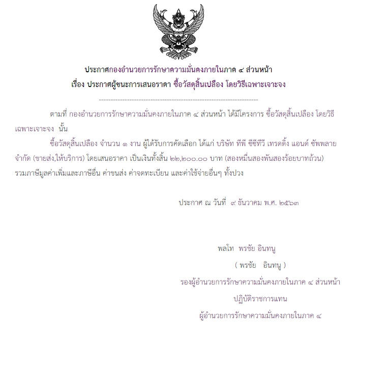 ประกาศผู้ชนะการเสนอราคา ซื้อวัสดุสิ้นเปลือง โดยวิธีเฉพาะเจาะจง ( ๒๒,๒๐๐.๐๐ บาท )