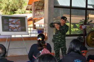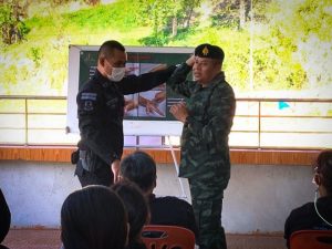 ในการนี้ ผู้บัญชาการกองพลทหารราบที่ 15 ได้ตรวจเยี่ยมการฝึกศิลปะป้องกันตัว พร้อมทั้งสาธิตศิลปะป้องกันตัว การต่อสู้ด้วยมือเปล่า เพื่อให้สมาชิก อรบ. สามารถป้องกันตนเอง ไม่ให้ตกเป็นเป้าหมายได้ต่อไป