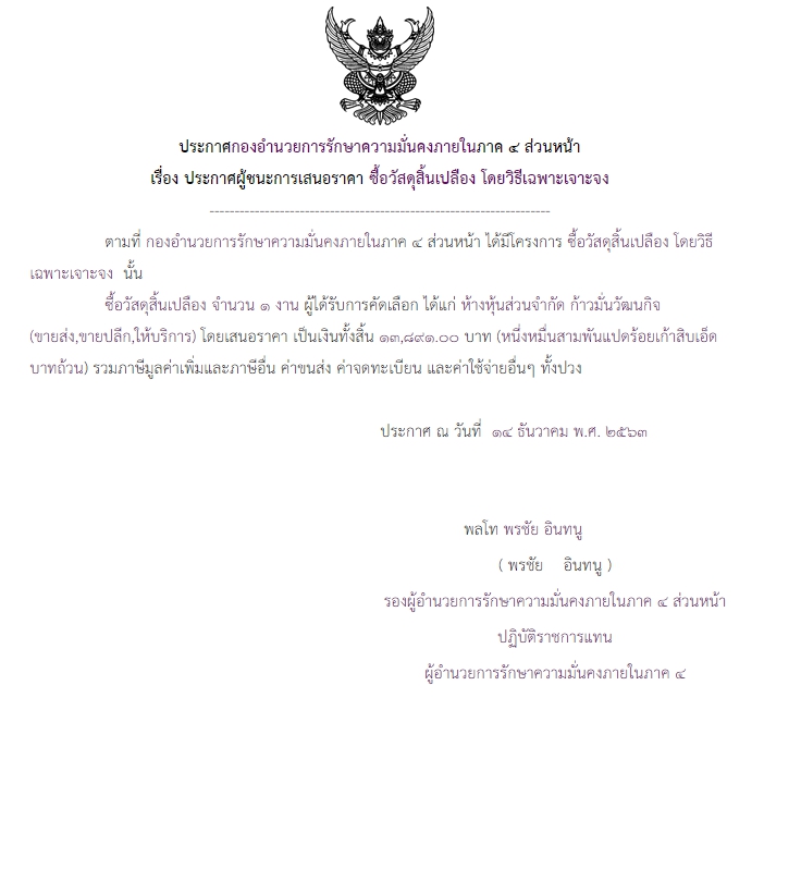 จัดซื้อ จัดจ้างประกาศผู้ชนะการเสนอราคา ประกาศผู้ชนะการเสนอราคา ซื้อวัสดุสิ้นเปลือง โดยวิธีเฉพาะเจาะจง (13,891.00) March 15, 2021 1000 Share Facebook Twitter Google+ Telegram LINE สกบ.กอ.รมน.ภาค 4 สน.