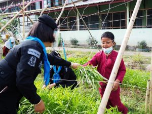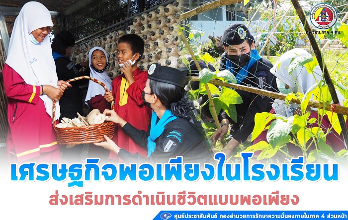 หน่วยเฉพาะกิจกรมทหารพรานที่ 41 จัดกำลังพล ชุดปฏิบัติการกิจการพลเรือนหญิง หน่วยเฉพาะกิจกรมทหารพรานที่ 41 ร่วมกับคณะครู ผู้นำชุมชน บุคลากรทางการศึกษา โรงเรียนบ้านวังพญา ขับเคลื่อนโครงการ “เศรษฐกิจพอเพียงในโรงเรียน” หน่วยเฉพาะกิจยะลา โดยร่วมกันเก็บเกี่ยวผลผลิตทางการเกษตร และนำมาปรุงอาหารกลางวันให้กับเด็กนักเรียน รวมถึงแจกจ่ายผลผลิตให้กับนักเรียนนำไปประกอบอาหารที่บ้าน เพื่อลดค่าใช้จ่ายในครัวเรือน และยังนำผลผลิตที่เหลือจำหน่ายให้ประชาชนในราคาถูก