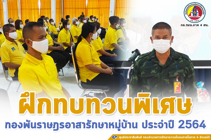 เมื่อวันที่ 20 มีนาคม 2564 เวลา 09.00 น. พลตรี ไพศาล หนูสังข์ ผู้บัญชาการกองพลทหารราบที่ 15 / ผู้อำนวยการศูนย์ประสานงานโครงการอันเนื่องมาจากพระราชดำริ เป็นประธานพิธีเปิดการฝึกทบทวนพิเศษกองพันราษฎรอาสารักษาหมู่บ้าน (อรบ./ อรม.) กองพันราษฎรอาสารักษาเมืองชุมชนเมืองนราธิวาส ณ ค่ายกัลยาณิวัฒนา ต.กะลุวอ อ.เมือง จ.นราธิวาส โดยมี พันเอก ยุทธนา สายประเสริฐ ผู้บังคับการกรมทหารราบที่ 151 /หัวหน้าคณะทำงานที่ 3 , หัวหน้ากองพันราษฎรอาสารักษาหมู่บ้าน (อรบ./ อรม.) กองพัน อรม.ชุมชนเมืองนราธิวาส และ สมาชิกราษฎรอาสารักษาหมู่บ้าน (อรบ./ อรม.) กองพัน อรม.ชุมชนเมืองนราธิวาส เข้าร่วมในพิธี สำหรับการฝึกทบทวนโครงการราษฎรอาสารักษาหมู่บ้าน (อรบ.) ประจำเดือนมีนาคม ปีงบประมาณ 2564 มีทั้งหมด 29 รุ่น จัดขึ้นตั้งแต่วันที่ 1 – 31 มีนาคม ในพื้นที่ จังหวัดปัตตานี ,จังหวัดยะลา, จังหวัดนราธิวาส และ 4 อำเภอของจังหวัดสงขลา ซึ่งมียอดผู้เข้ารับการฝึกรุ่นละจำนวน 120 คน โดยมีวัตถุประสงค์เพื่อให้ผู้เข้ารับการฝึก มีความรอบรู้ในเรื่องสถานการณ์ในพื้นที่, ยุทธวิธีฝ่ายตรงข้าม, การป้องกันตนเองไม่ให้ตกเป็นเป้าหมาย และในการแก้ไขปัญหากรณีถูกลอบทำร้าย สามารถใช้อาวุธประจำกายได้อย่างคล่องแคล่ว สามารถแก้ไขปัญหาเฉพาะหน้าได้เมื่อประสบเหตุ และเพื่อให้สมาชิก อรบ.สามารถป้องกันตนเอง ไม่ให้ตกเป็นเป้าหมายได้ต่อไป