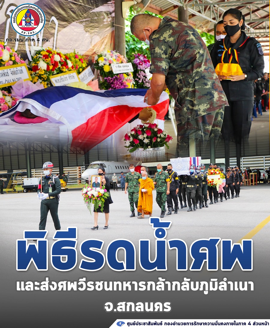 วันนี้ ( 22 มีนาคม 2564 ) เวลา 10.00 น. ที่ วัดสุวรรณากร ตำบลบ่อทอง อำเภอหนองจิก จังหวัดปัตตานี พลโท พรชัย อินทนู รองผู้อำนวยการรักษาความมั่นคงภายในภาค 4 ส่วนหน้า เป็นประธานพิธีรดน้ำศพ อาสาสมัครทหารพราน สกล ปัญญา อายุ 30 ปี ตำแหน่งพลปืนเล็ก ชุดปฏิบัติการที่ 3 กองร้อยทหารพรานที่ 4906 หน่วยเฉพาะกิจกรมทหารพรานที่ 49 ซึ่งได้รับบาดเจ็บจากเหตุคนร้ายใช้อาวุธปืนไม่ทราบชนิดและขนาด ยิงใส่ฐานปฏิบัติการ ในพื้นที่ บ้านไอร์กือเนาะ หมู่ที่ 5 ตำบลศรีบรรพต อำเภอศรีสาคร จังหวัดนราธิวาส เหตุเกิดเมื่อเวลา 07.45 น. ของวันที่ 13 มีนาคม 2564 ที่ผ่านมา โดยเข้ารับการรักษาตัว ณ โรงพยาบาลสงขลานครินทร์ อำเภอหาดใหญ่ จังหวัดสงขลา และได้เสียชีวิตเมื่อวันที่ 19 มีนาคม 2564 ที่ผ่านมา โดยมี นายวิชิต อ่อนทองอิน นายอำเภอหนองจิก, ผู้ช่วยเลขาธิการศูนย์อำนวยการบริหารจังหวัดชายแดนภาคใต้, คณะผู้บังคับบัญชา, ผู้บังคับหน่วยเฉพาะกิจนราธิวาส, ผู้แทนหน่วยเฉพาะกิจในพื้นที่, ส่วนราชการ, เจ้าหน้าที่ทหาร, ตำรวจ ตลอดจนประชาชนในพื้นที่ร่วมพิธีแสดงความเคารพและอาลัย แก่วีรชนทหารกล้า