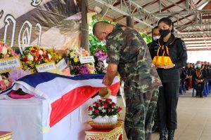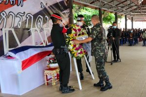 ในการนี้ พลโท พรชัย อินทนู รองผู้อำนวยการรักษาความมั่นคงภายในภาค 4 ส่วนหน้า เป็นผู้แทนวางพวงหรีดเคารพศพในนามของพลเอก ประยุทธ์ จันทร์โอชา นายกรัฐมนตรี, พลเอก ณรงค์พันธ์ จิตต์แก้วแท้ ผู้บัญชาการทหารบก, พลโท เกรียงไกร ศรีรักษ์ แม่ทัพภาคที่ 4 / ผู้อำนวยการรักษาความมั่นคงภายในภาค 4 และในนามกองทัพบก ทั้งนี้ ในพิธีรดน้ำศพมีการมอบเหรียญบางระจัน และประกาศเกียรติคุณแห่งความเสียสละในการปฏิบัติหน้าที่ผู้วายชนม์ และเพื่อเป็นเกียรติแก่วงศ์ตระกูล พร้อมมอบเงินช่วยเหลือให้แก่ครอบครัวผู้เสียชีวิต