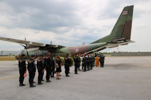 ต่อมาเวลา 13.00 น. ที่ สนามบินบ่อทอง อำเภอหนองจิก จังหวัดปัตตานี พลโท พรชัย อินทนู รองผู้อำนวยการรักษาความมั่นคงภายในภาค 4 ส่วนหน้า เดินทางเป็นประธานในพิธีส่งศพ อาสาสมัครทหารพราน สกล ปัญญา โดยมี ผู้บังคับหน่วยเฉพาะกิจนราธิวาส , รองผู้บังคับหน่วยเฉพาะกิจสงขลา , ส่วนราชการ , เจ้าหน้าที่ทหาร ตำรวจ ร่วมพิธี โดยได้เคลื่อนย้ายศพวีรชนทหารกล้า ด้วยเครื่องบินลำเลียงแบบ C-295W เพื่อกลับสู่ภูมิลำเนาอย่างสมเกียรติ ไปยังตำบลวาริชภูมิ อำเภอวาริชภูมิ จังหวัดสกลนคร เพื่อไปบำเพ็ญกุศลตามหลักศาสนาต่อไป