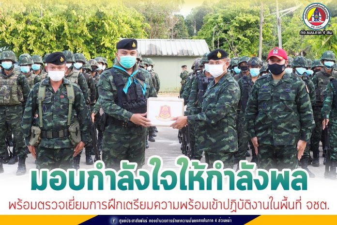 สำหรับการฝึกประกอบด้วย การรักษาความปลอดภัยเส้นทาง การรักษาความปลอดภัยเป้าหมายอ่อนแอ, การพบปะพัฒนาสัมพันธ์กับประชาชน และสนับสนุนการปฏิบัติงานด้านการเมือง ตามแผนปฏิบัติการของ กองอำนวยการรักษาความมั่นคงภายในภาค 4 ส่วนหน้า แต่ทั้งนี้ให้ทําการฝึกเพิ่มเติมเมื่อมีโอกาส โดยใช้แนวทางการฝึก ตามเอกสารข้อมูลที่ กรมยุทธศึกษาทหารบก ได้แจกจ่ายให้หน่วยแล้ว ซึ่งมีวัตถุประสงค์ เพื่อเป็นการดําเนินการตามนโยบายของกองทัพบก ให้หน่วยที่จะสับเปลี่ยนกําลังพลในห้วง เมษายน 2564 ได้มีความคุ้นเคยและรับทราบสถานการณ์ในพื้นที่จริง และยังเป็นการเพิ่มเติมกําลังพลในการแก้ไขปัญหาความไม่สงบในพื้นที่จังหวัดชายแดนใต้ โดยกําหนดแผนการฝึกให้สอดคล้องกับงานทางด้านยุทธวิธีของหน่วยในพื้นที่ ตลอดจนพัฒนาขีดความสามารถของหน่วยให้มีความพร้อมในการปฏิบัติภารกิจในพื้นที่จังหวัดชายแดนใต้อีกด้วย