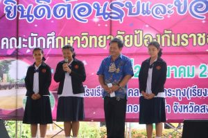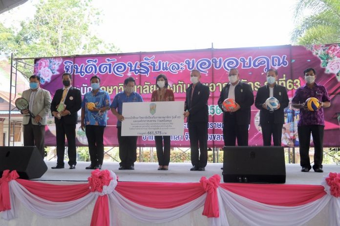 วันนี้ที่ 24 มีนาคม 2564 ที่โรงเรียนบ้านคลองนกกระทุง (เรียงราษฎร์อุทิศ 2) หมู่ที่ 4 ตำบลท่าช้างอำเภอบางกล่ำ จังหวัดสงขลา พลโท วิโรจน์ เกิดแสง ผู้อำนวยการวิทยาลัยป้องกันราชอาณาจักร พร้อมด้วยคณะนักศึกษา วปอ.รุ่นที่ 63 และผู้เข้าอบรมหลักสูตรบริหารความมั่นคง สำหรับผู้บริหารระดับสูง (สวปอ.มส. SML) รุ่นที่ 2 ร่วมส่งมอบโครงการปรับปรุงอาคารสำนักงาน อาคารเรียน โรงยิม และสนามฟุตบอลรวมถึงสนับสนุนอุปกรณ์กีฬา และทุนการศึกษาให้กับนักเรียนโรงเรียนบ้านคลองนกกระทุง (เรียงราษฎร์อุทิศ 2) ร่วมเติมเต็มสร้างความพร้อมให้กับโรงเรียน เพื่อสร้างและขยายโอกาสทางการศึกษาให้แก่เยาวชน โดยมี นางสุรียพรรณ์ ณ สงขลา รองผู้ว่าราชการจังหวัดสงขลา นายสมสุข เพชรกาญจน์ ผู้อำนวยการโรงเรียนบ้านคลองนกกระทุง (เรียงราษฎร์อุทิศ 2) พร้อมด้วยคณะครู นักเรียนโรงเรียนบ้านคลองนกกระทุง (เรียงราษฎร์อุทิศ 2) ร่วมให้การต้อนรับ