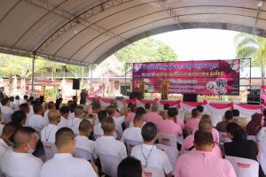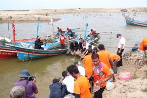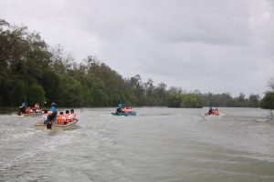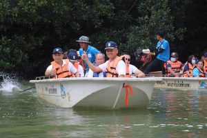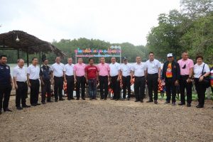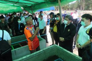 ต่อมาในช่วงบ่าย คณะนักศึกษา วปอ.รุ่นที่ 63 และผู้เข้าอบรมหลักสูตรบริหารความมั่นคง สำหรับผู้บริหารระดับสูง (สวปอ.มส. SML) รุ่นที่ 2 ได้เดินทางต่อไปยังบ้านหัวเขื่อนปากน้ำเทพา อำเภอเทพา เพื่อมอบอุปกรณ์สำหรับใช้เพาะพันธุ์ปูม้าให้กับกลุ่มประมงพื้นบ้าน หัวเขื่อนปากน้ำเทพา รวมมูลค่า 101,640 บาท พร้อมได้เยี่ยมชมและเรียนรู้วิธีการอนุรักษ์พันธุ์ปูม้าการอนุบาลลูกปู และร่วมปล่อยปูม้ากลับสู่ทะเล เพื่ออนุรักษ์และฟื้นฟูทรัพยากรทางทะเลและสร้างความเข้มแข็งทางด้านเศรษฐกิจให้แก่ชาวประมงพื้นบ้านให้สามารถยืนหยัดด้วยตัวเองอย่างยั่งยืน อีกทั้งได้ไปเยี่ยมชมศูนย์เรียนรู้ฟื้นฟูอนุรักษ์ลุ่มน้ำ และป่าชายเลน ล่องเรือชมความอุดมสมบูรณ์ของป่าโกงกาง ในพื้นที่อำเภอเทพา จังหวัดสงขลาอีกด้วย