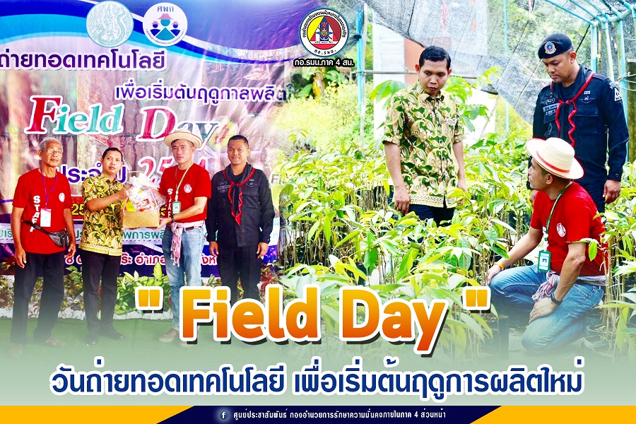 สำหรับกิจกรรม วันถ่ายทอดเทคโนโลยี เพื่อเริ่มต้นฤดูการผลิตใหม่ หรือที่เรียกว่า งานวัน Field Day เพื่อเปิดโอกาสให้เกษตรกรได้รับทราบเทคโนโลยีการผลิตใหม่ๆ ช่องทางการตลาด แหล่งข้อมูล การเลือกใช้เทคโนโลยีที่เหมาะสมกับสภาพพื้นที่ของตนเอง ตลอดจนได้แลกเปลี่ยนเรียนรู้กับเกษตรกรด้วยกันเอง รวมทั้งนักวิชาการผู้เชี่ยวชาญในแต่ละสาขา ซึ่งเป็นตัวแทนจากหน่วยงานต่าง ๆ ในสังกัดกระทรวงเกษตรและสหกรณ์ โดยมีกรมส่งเสริมการเกษตร เป็นหน่วยงานหลักในการจัดงาน โดยใช้ศูนย์เรียนรู้การเพิ่มประสิทธิภาพการผลิต สินค้าเกษตร หรือ ศพก. ซึ่งเป็นแหล่งเรียนรู้ทางการเกษตรที่มีเกษตรกรผู้นำเป็นบริการจัดการ ภายใต้การสนับสนุนของทุกหน่วยงานในสังกัดกระทรวงเกษตรและสหกรณ์ เป็นสถานที่จัดงาน Field Day จึงเป็นสัญญาณของการเริ่มต้นฤดูการผลิตใหม่ที่เหมาะสม สำหรับปีการผลิตนี้ โดยเกษตรกรจะได้นำหลักปรัชญาเศรษฐกิจพอเพียงและการทำการเกษตรทฤษฎีใหม่มายึดถือปฏิบัติและขยายผล ซึ่งจะทำให้เกษตรกรมีความเข้มแข็งและพึ่งพาตนเองได้ในระยะยาวต่อไป