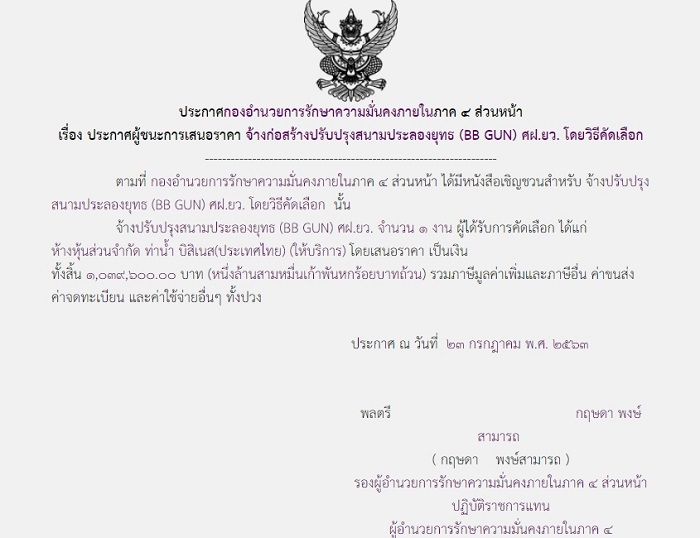 จัดซื้อ จัดจ้างประกาศผู้ชนะการเสนอราคา ประกาศผู้ชนะการเสนอราคา จ้างก่อสร้างปรับปรุงสนามประลองยุทธ (BB GUN) ศฝ.ยว. โดยวิธีคัดเลือก July 23, 2020 1170 Share Facebook Twitter Google+ Telegram LINE