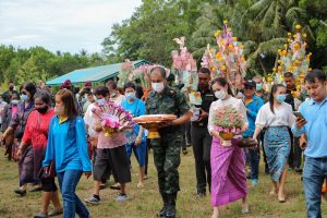 พลโท เกรียงไกร ศรีรักษ์ แม่ทัพภาคที่ 4 / ผู้อำนวยการรักษาความมั่นคงภายในภาค 4 กล่าวว่า ขอบคุณพี่น้องประชาชนทุกคนที่เดินทางมาร่วมทำบุญร่วมกันครั้งนี้ ขอให้พี่น้องประชาชนยึดมั่นในความดี และร่วมกันดูแล บูรณะศาสนสถานที่เป็นของส่วนรวม เพื่อสามารถใช้ประโยชน์ รวมทั้งฝากพี่น้องประชาชน ช่วยกันสอดส่องดูแลเป็นหูเป็นตาความเคลื่อนไหวในพื้นที่ หากมีอะไรผิดสังเกตุสามารถแจ้งมาได้ทางสภาสันติสุขตำบล ซึ่งเป็นอีกหนึ่งช่องทางการขับเคลื่อนและแก้ไขปัญหาต่าง ๆให้กับพี่น้องประชาชน ทั้งนี้หากพี่น้องประชาชนมีสิ่งใดที่อยากให้หน่วยงานภาครัฐช่วยเหลือ สามารถโทรสายด่วนมาได้ที่ เบอร์โทรศัพท์ 061-1732999 สายตรงแม่ทัพภาคที่ 4 ได้ตลอด 24 ชั่วโมง