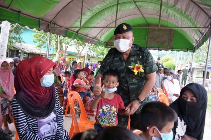 เมื่อวันที่ 29 มีนาคม 2564 ณ ที่ทำการผู้ใหญ่บ้าน บ้านลาเวง หมู่ 3 ตำบลเชิงคีรี อำเภอศรีสาคร จังหวัดนราธิวาส พลโทเกรียงไกร ศรีรักษ์ แม่ทัพภาคที่ 4 /ผู้อำนวยการรักษาความมั่นคงภายในภาค 4 ลงพื้นที่พบปะประชาชน และส่วนราชการในพื้นที่ ตำบลเชิงคีรี โดยมี นายเจษฎา จิตรัตน์ ผู้ว่าราชการจังหวัดนราธิวาส , พลตรีไพศาล หนูสังข์ ผู้บังคับหน่วยเฉพาะกิจนราธิวาส และนายกริช น้อยผา นายอำเภอศรีสาคร พร้อมด้วยส่วนราชการในพื้นที่ และประชาชนร่วมให้การต้อนรับ โดยการลงพื้นที่ครั้งนี้แม่ทัพภาคที่ 4 /ผู้อำนวยการรักษาความมั่นคงภายในภาค 4 ได้ร่วมพบปะแลกเปลี่ยนความคิดเห็น และมารับข้อเสนอแนะกับประชาชนและส่วนราชการในพื้นที่ และมอบอุปกรณ์กีฬาให้กับศูนย์การศึกษาอิสลามประจำมัสยิด หรือตาดีกา ในพื้นที่จำนวน 6 แห่ง และพร้อมกันนี้ได้ไปเยี่ยมชมการดำเนินงานของศูนย์บำบัดบ้านพิชิตใจ บ้านดาฮง สถานบำบัดยาเสพติดของชุมชน จัดตั้งขึ้นโดยสภาสันติสุขตำบลเชิงคีรี โดยใช้กระบวนการชุมชนเข้มแข็งเอาชนะยาเสพติด หรือหมู่บ้าน CBTX บ้านดาฮง ปัจจุบันได้ดำเนินการนำเยาวชนเข้ารับการบำบัดรักษาไปแล้ว จำนวน 2 รุ่น โดยใช้กระบวนการ 5 ขั้นตอน คือ การค้นหาผู้เสพยาเสพติดและผู้ติดยาเสพติด การคัดแยกระหว่างผู้เสพ และผู้ติดยาเสพติด การส่งเข้าบำบัดอาการ การติดตามเยาวชนที่ผ่านการบำบัด และขั้นตอนสุดท้ายคือการสร้างอาชีพและพัฒนาคุณภาพชีวิต ถือเป็นการบำบัดฟื้นฟูผู้ใช้ยาเสพติดโดยใช้ชุมชนเป็นศูนย์กลาง
